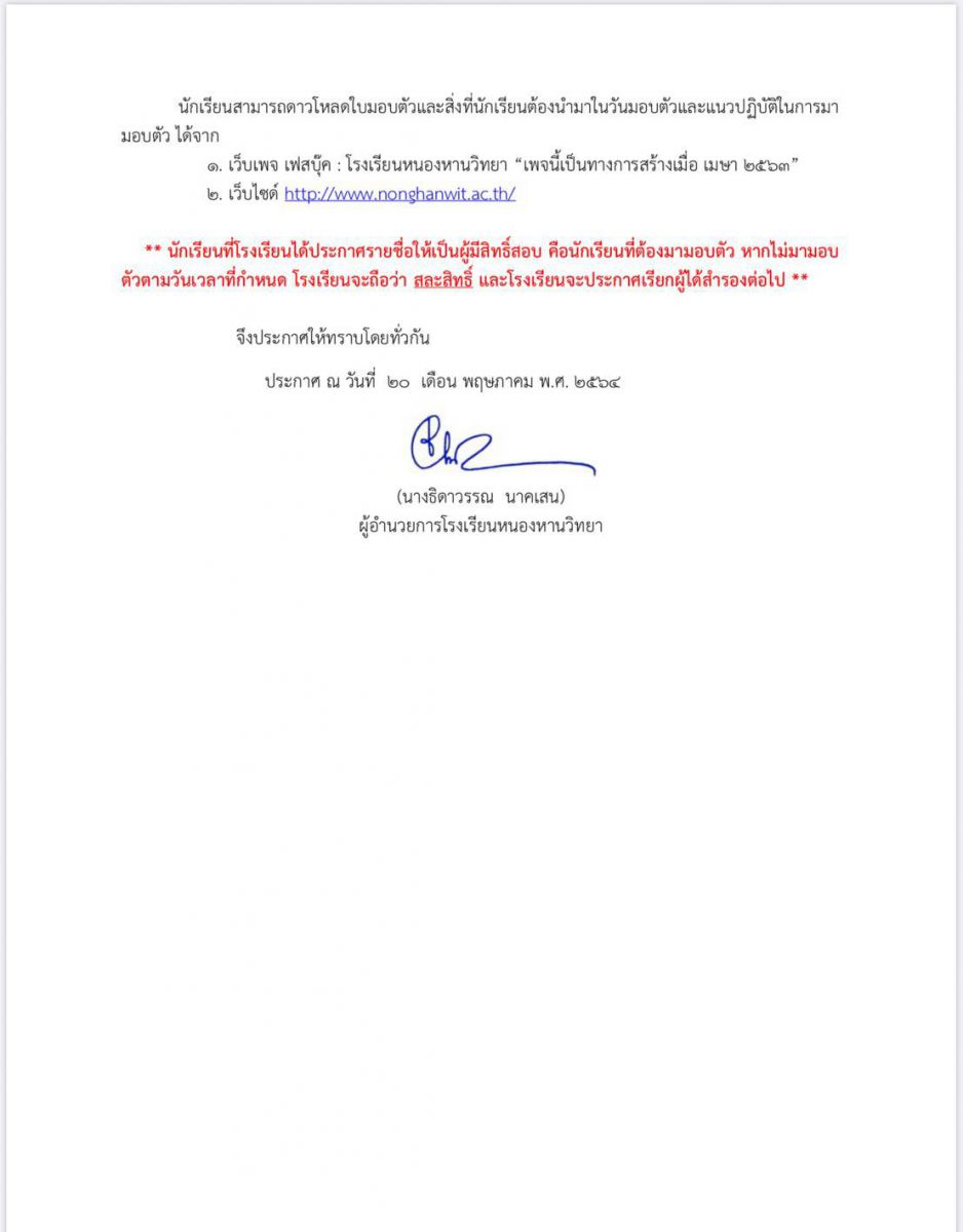 ประกาศการมอบตัวนักเรียน ่ม. 1 ปีการศึกษา 2564 (ฉบับแก้ไข )