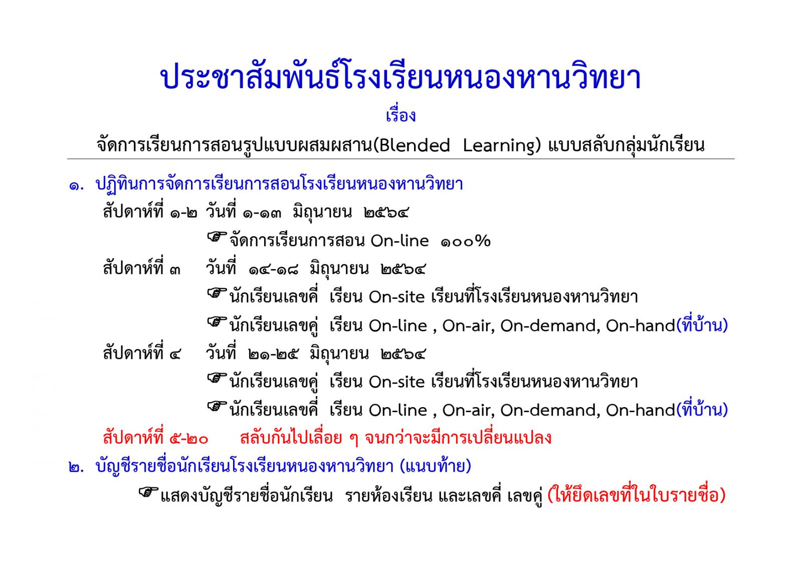 ประกาศ เรื่อง รูปแบบการจัดการเรียนการสอน 1/2564